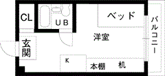 神大生女子専用物件◎家主さん同建物居住で安心。宅急便受取可。コンビニ、スーパー近く。 机・椅子・ベッド・棚付。共用洗濯機(有料)あり。